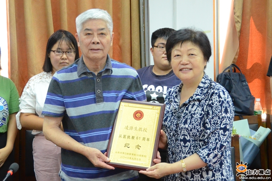 [本站讯]9月8日,口腔医学院举办庆祝第34届教师节暨纪念凌滌生教授从医执教61周年座谈会,山东大学校长樊丽明出席座谈会并为凌滌生教授颁发从医执教61周年纪念牌。