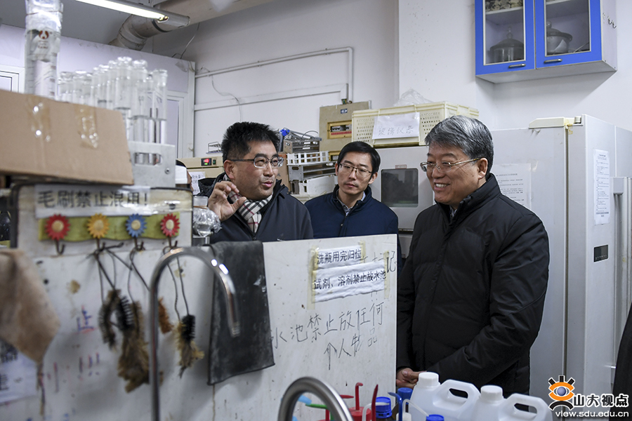[本站讯]1月2日,校党委书记郭新立深入材料学院、药学院、化学院、晶体所等单位,现场督导检查实验室安全工作,副校长芦延华一同检查。