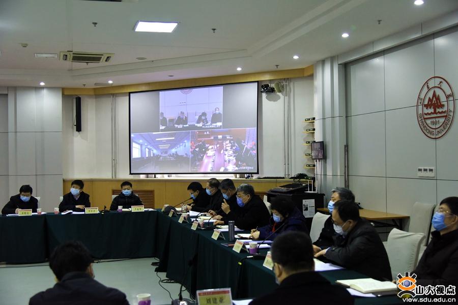 [本站讯]1月28日,山东大学召开关于新型冠状病毒感染的肺炎疫情防控工作第三次专题会议。会议以一校三地视频会议形式召开,传达学习习近平总书记有关重要指示精神,贯彻落实中央和教育部、山东省委省政府有关通知要求,对学校疫情防控工作进行再研究、再动员、再部署。校党委书记郭新立、校长樊丽明出席会议并讲话,常务副校长王琪珑主持会议。