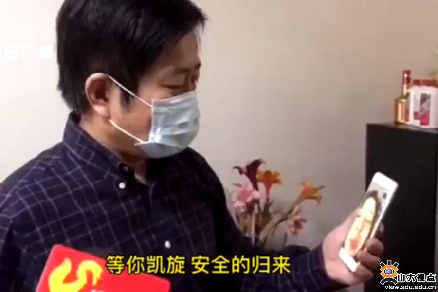 山东大学第二医院重症专业主管护师陈长静8岁的双胞胎女儿在得知爸爸要奔赴湖北抗击新型冠状病毒肺炎疫情后,虽然很懂事地表示支持,但稚嫩的面庞还是流露出不舍:“爸爸是去给武汉那些生病的人去治疗,想让爸爸平安回来。”陈长静的妻子说:“昨天晚上两点多,老二跑到我房间去说睡不着,问她怎么了,她说担心爸爸。”临行前,女儿不舍地抱住陈长静:“爸爸,你尽量不要感染。”妻子在送丈夫去集合的路上,眼泪在眼眶里打了转,叮嘱道:“那里肯定很艰苦,你去了要做好防护,多吃饭,坐电梯的时候戴上一次性手套,鞋套也得穿上......”