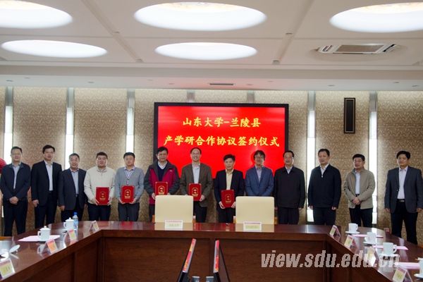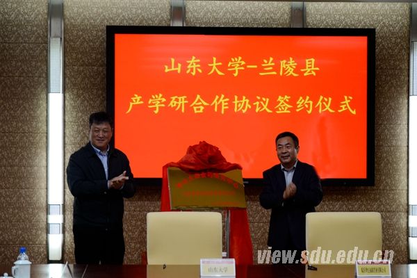 会议由山东大学技术转移中心主任李勇主持。兰陵县县委书记、县人大常委会主任郑连胜介绍了兰陵县的基本情况。山东大学合作发展部部长王飞与兰陵县县委副书记、县长薛峰签订了《山东大学-兰陵县人民政府产学研合作协议》,山东大学技术转移中心副主任董春杰与临沂世纪福缘董事长王友福签订了《山东大学-世纪福缘产学研合作协议》。王琪珑与李业荣为“苍山大蒜食药研究中心”揭牌。兰陵县委常委、组织部部长李剑和王友福为山东大学6位专家颁发了“苍山大蒜食药研究中心”专家聘书。