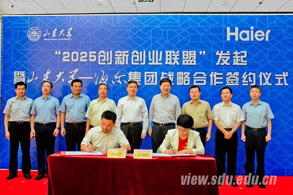 山东大学总会计师曹升元、海尔集团副总裁王筱楠分别代表双方签署战略合作协议。山东省政府秘书长蒿峰、山东省科技厅厅长刘为民、共青团山东省委书记张涛、山东省教育厅副厅长王坦、山东省科学技术协会副主席纪洪波参加活动。