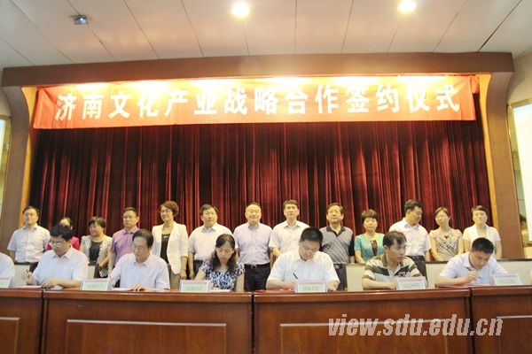 在文化产业领域,为对接地方、服务社会,山东大学由人文社科研究院牵头,依托学科齐全的整体优势,跨学科整合校内学术资源,打造了包括文化产业发展规划、文化市场资源整合、公司治理、品牌传播、工业设计、建筑设计、艺术设计、旅游规划、环境保护、民俗研究、文化遗产保护等文化产业全产业链研究团队。在此基础上,以此次签约为契机,学校将与济南市相关部门和文化企业,在文化产业政策咨询、课题研究、规划设计、园区管理、营销推广、创业孵化、人才培养、实习实训等领域展开全方位合作。