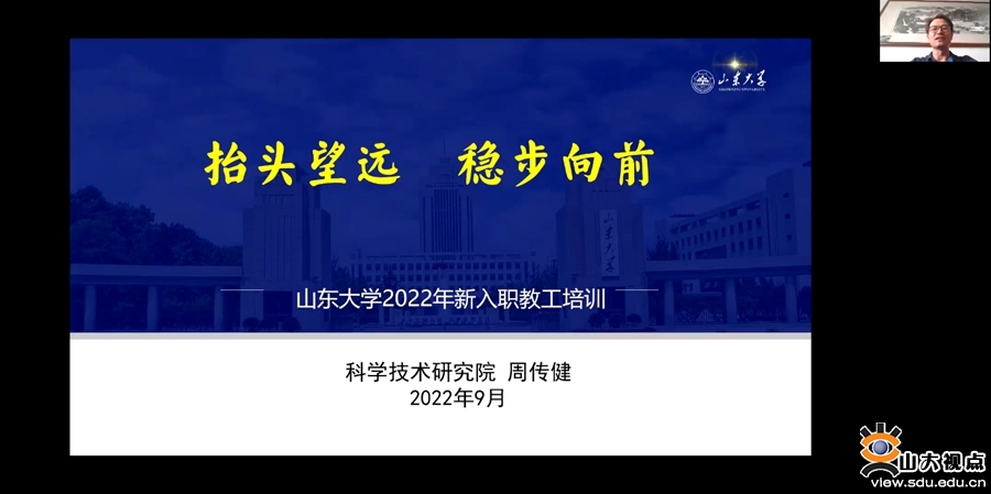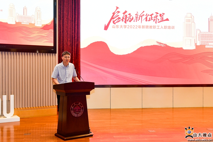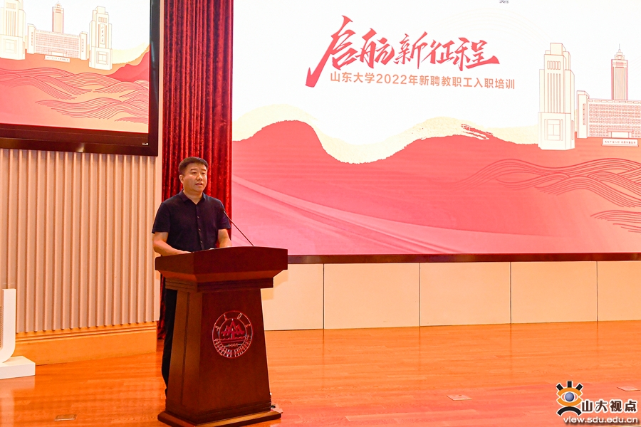 [本站讯] 近日,山东大学2022年新聘教职工入职培训在一校三地同步开展。本次培训设置文化认同、师德师风、专业素养、合作交流、责任纪律等五大主题,共19场报告,增强新聘教职工履职尽责、担当作为能力,帮助“山大新人”加速启航。山东大学校长李术才为新聘教职工讲授了“山大第一课”。