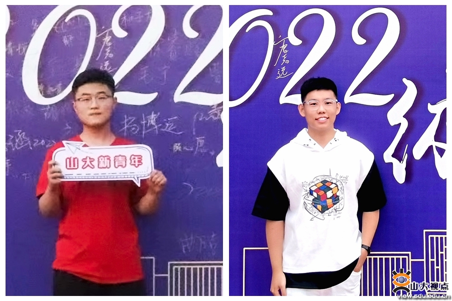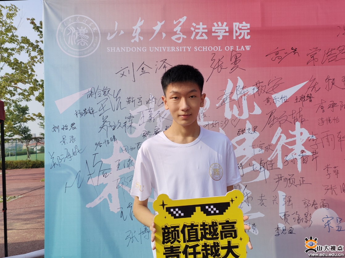 政治学与公共管理学院本科新生黄烁齐(左)说:“选择山大,是因为山大‘学无止境,气有浩然’的校训精神,政管学院‘知政为公,厚德笃行’的院训精神;亦是因为山大是梦想,也是力量。初识山大,既有凤凰、观海两居花草树木之优美,振声、华岗二苑教学设施之便利;又有一多、从文书院大师之风骨,图书馆、实验室学者之氛围;更有‘孔孟之乡,礼仪之邦’的文化底蕴在山大博物馆典藏的文物中流淌。寄望山大,惟愿成为一名崇实求新的山大学子,志向远大,与前贤比肩,不畏攀登,创民族未来。”