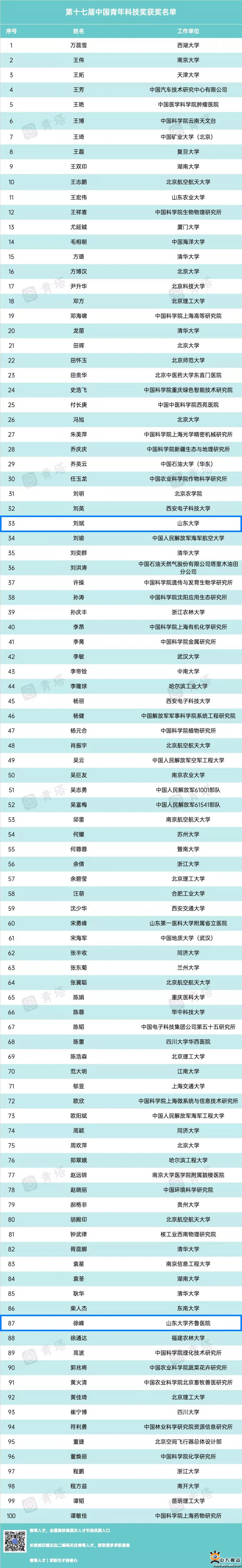 [本站讯]11月12日,第十七届中国青年科技奖在2022世界青年科学家峰会开幕式上举行颁奖仪式,山东大学岩土工程中心教授刘斌、齐鲁医院教授徐峰荣获该奖项。