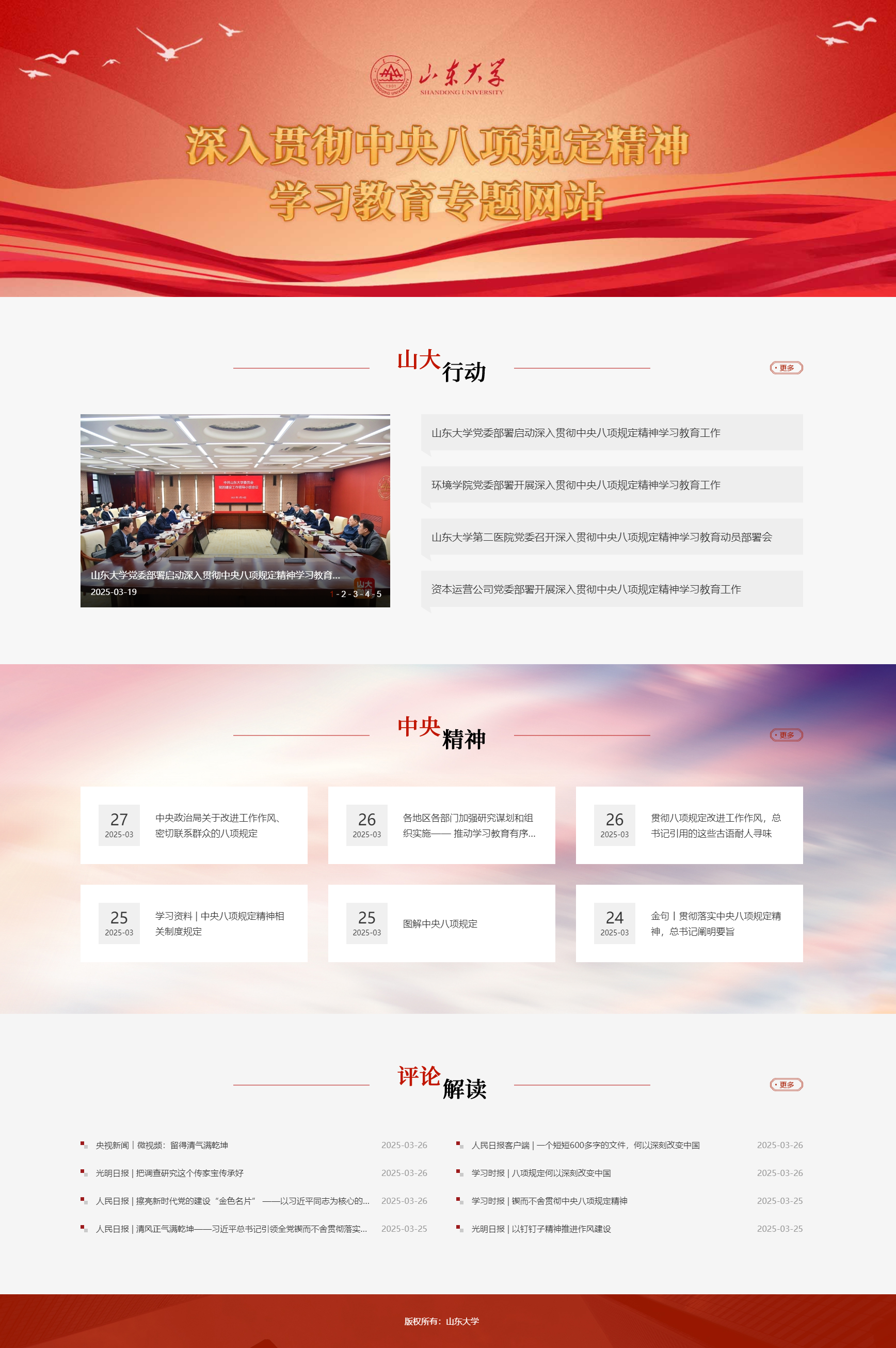 [本站讯]4月7日,山东大学深入贯彻中央八项规定精神学习教育专题网站正式上线。