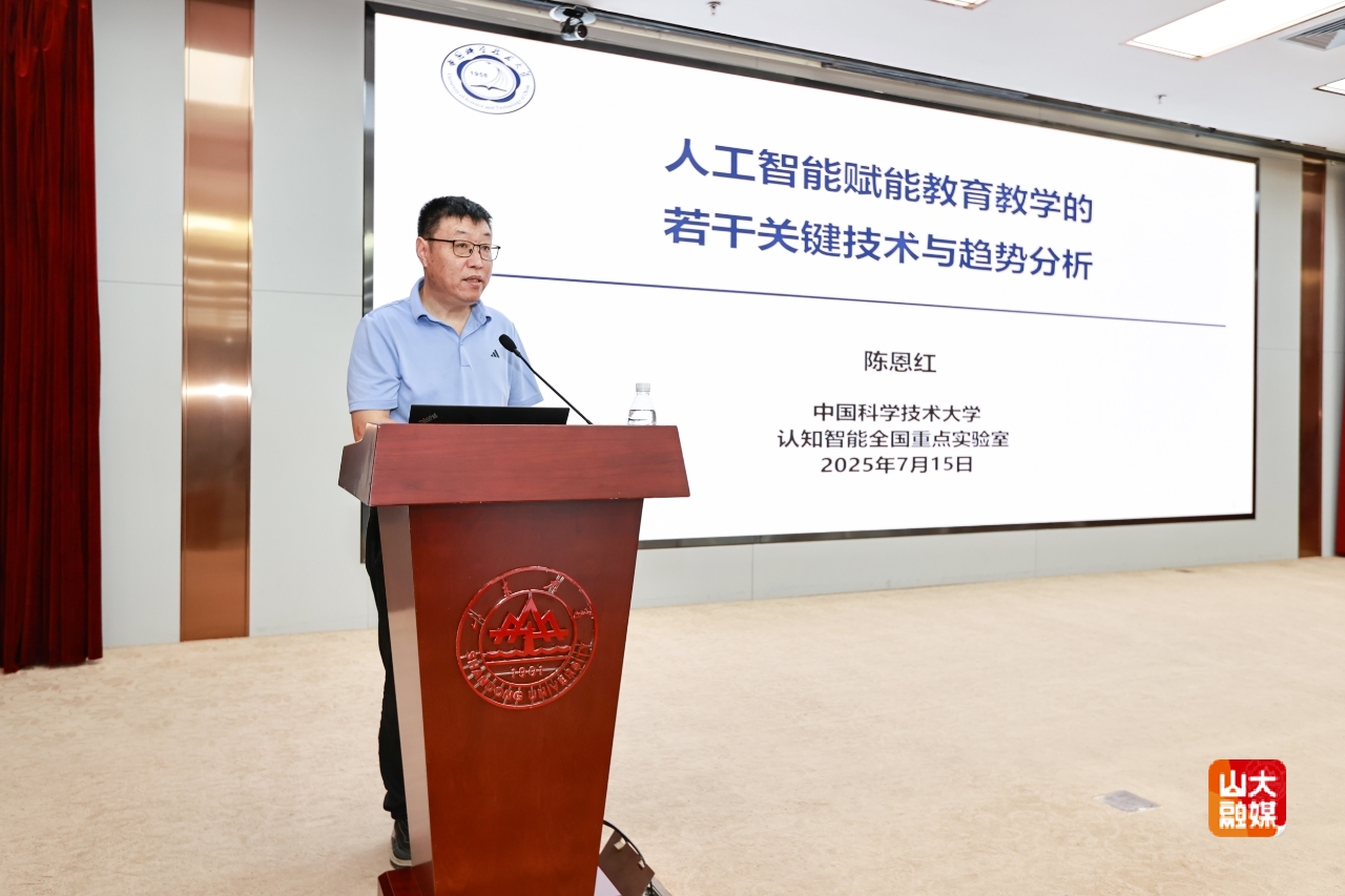 中国科学技术大学讲席教授、认知智能全国重点实验室副主任陈恩红作题为“人工智能赋能教育教学的若干关键技术与趋势分析”的大会报告,系统介绍了教学范式的发展历程及当下人工智能教育的变化趋势,分享了中科大智慧校园建设先进经验。南开大学科学技术研究部常务副部长金柏江作题为“招生培养一体化改革的南开实践探索”的大会报告,以卓越公能人才培养体系3.0为例,分享了南开大学招生培养综合改革最新经验。上海软科教育信息咨询有限公司顾问刘强根据“2025软科中国大学专业排名”全面梳理了山东大学本科专业布局及建设状况,分析了专业建设质量的影响因素并提出了专业发展建议。
