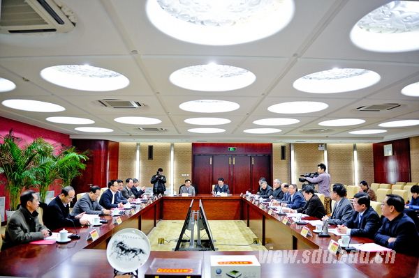 [本站讯]1月9日上午,山东省委常委、常务副省长孙伟一行到山东大学走访慰问山东大学在鲁院士,并与中国工程院院士王文兴,中国科学院院士钱逸泰,中国工程院院士艾兴、张明高、张运,中国科学院院士彭实戈进行了座谈交流。山东大学党委书记李守信、校长张荣出席座谈会。座谈会由孙伟主持。