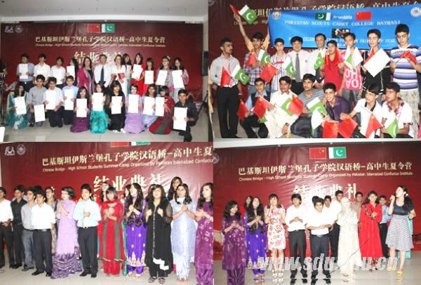 [本站讯]6月16至30日,庆祝中巴建交60周年暨“2011中巴友好年”的“汉语桥——巴基斯坦高中生夏令营”活动在山东大学举行。来自巴基斯坦全国各地的8所学校和伊斯兰堡孔子学院的100名成员,其中包括90名高中生和10名领队老师参加了夏令营活动。