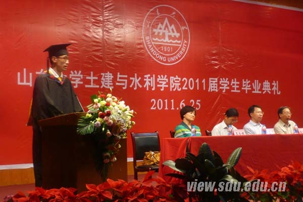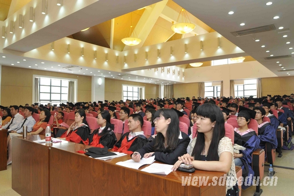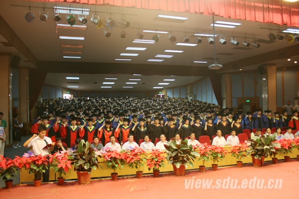 [本站讯]6月20日至27日,山东大学经济学院、法学院、文学院、外语学院、艺术学院、历史学院、数学学院、信息学院、计算机学院、软件学院、生命学院、材料学院、机械学院、能动学院、电气学院、土建学院、公卫学院、医学院、口腔医学院、护理学院、药学院、管理学院、马克思主义学院等23个学院陆续举行了2011届毕业生毕业典礼。山东大学终身教授张运院士、彭实戈院士、曾繁仁教授、路遥教授等分别参加了所在学院的毕业典礼。各学院知名学者或主要负责人为毕业生们颁发了毕业证书并合影留念。 20日,法学院、外语学院、历史学院、电气学院、公卫学院分别举行了2011届学生毕业典礼。法学院院长齐延平、党委书记盖玉强,外语学院院长王俊菊、党委书记郑倩,历史学院院长王育济,电气学院院长刘玉田、党委书记王钧,公卫学院党委书记王永平等分别出席了各自学院的毕业典礼并致辞。法学院教师代表武树臣、外语学院教师代表朴银淑、历史学院教师代表路遥、公卫学院教师代表刘萍在发言中祝同学们毕业后在人生的另一个阶段施展才能,有所作为,实现各自的人生价值。法学院校友、山东省高级人民法院民三庭庭长于玉希望毕业生们既要带着希望、又要充满信心的适应角色转变,尽快投入到新的工作岗位当中去。 21日和22日,计算机学院、软件学院、护理学院、管理学院分别举行了2011届毕业生毕业典礼。计算机学院、软件学院院长孟祥旭,护理学院院长娄凤兰、党委书记袁魁昌,管理学院院长徐向艺等出席了各自学院的毕业典礼,对2010届毕业生表示祝贺并提出希望。计算机学院教师代表石冰、护理学院教师代表王克芳、管理学院教师代表丁荣贵等分别在发言中鼓励毕业生们在今后的人生旅途中脚踏实地、把握时机、实现自我、贡献祖国。 23日和24日,文学院、艺术学院、数学学院、生命学院、材料学院分别举行了2011届毕业生毕业典礼。文学院院长郑春,艺术学院院长李晓峰、党委书记孙东升,生命学院院长曲音波、党委书记夏光敏,材料学院院长赵国群等出席了各自学院的毕业典礼。文学院教师代表盛玉麒、艺术学院教师代表张义宾、数学学院教师代表冯俊娥等在发言中希望广大毕业生在以后的人生道路上树立崇高理想,不断学习进步,创造辉煌人生。材料学院校友、中国石油济柴动力公司副经理贾胜军结合自身的工作经历,勉励即将踏上社会的毕业生,在今后的岗位上埋头苦干,做事注意细节和方式方法,对工作忠诚,处事果断,成为复合型人才。 25日,能动学院、土建学院、口腔医学院分别举行了2011届毕业生毕业典礼。能动学院院长田茂诚、党委书记潘国栋,土建学院院长李术才、党委书记刘学东,口腔医学院院长杨丕山、党委书记徐欣等出席了各自学院的毕业典礼。土建学院教师代表冯维明、口腔医学院教师代表张风河在发言中希望毕业生们常怀感恩之心,无论是走向工作第一线,还是选择继续深造,都要不断地提升人格、升华德性。能动学院校友、山东电力核电建设集团公司总经理兼党委书记王令方与同学们分享了自己30多年的工作经验。口腔医学院优秀校友、齐鲁医院口腔科副主任刘少华深情地回顾了自己的大学时光,并与毕业生约定共同关心和支持母校的发展。 26日和27日,经济学院、信息学院、机械学院、医学院、药学院、马克思主义学院分别举行了2011届毕业生毕业典礼。经济学院院长彭实戈、党委书记陈宏伟,信息学院院长袁东风,机械学院院长李剑峰,医学院院长张运、党委书记陈鑫,药学院院长王凤山、党委书记赵翠萍,马克思主义学院院长周向军、党委书记刘明芝等分别出席了各自学院的毕业典礼,并向同学们提出希望。经济学院教师代表陈强、机械学院教师代表张进生、医学院教师代表于修平、药学院教师代表李敏勇、马克思主义学院教师代表陈桂香在发言中真诚希望同学们能够在新的征程中拼搏奋进,以优异的成绩回报母校。