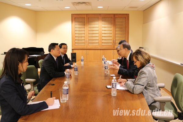 [本站讯]4月12日下午,山东大学校长张荣在美国耶鲁大学与共同参加联合国文化遗产保护全球大学校长会议的联合国秘书长潘基文会见。