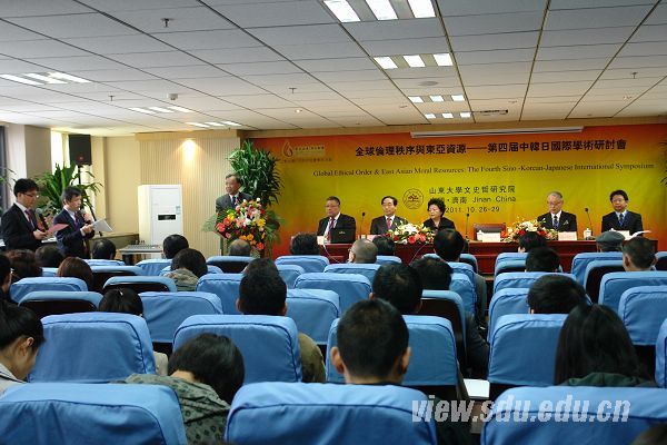 [本站讯]10月26日,“全球伦理秩序与东亚资源”——第四届中日韩三国学术研讨会在山东大学中心校区举行。副校长樊丽明出席开幕式并致辞。来自中国、日本、韩国和台湾地区的30多名学者参加了研讨会。