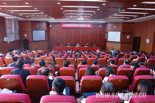 [本站讯]10月31日上午,山东高校思想政治理论课教师培训基地第八期培训班开学典礼在山东大学中心校区知新楼举行。山东大学党委副书记李建军出席开学典礼并致辞。 李建军在致辞中说,党的十七届六中全会提出,要推动社会主义文化大发展大繁荣,这对高校是机遇,同时也是挑战。实现六中全会提出的“要坚持马克思主义指导地位,坚定中国特色社会主义共同理想,弘扬以爱国主义为核心的民族精神和以改革创新为核心的时代精神,树立和践行社会主义荣辱观”,是高校思想政治理论课义不容辞的责任和义务。各高校思想政治理论课教师要深入学习深刻领会六中全会精神,从实际出发,抓住机遇,勇于担当,既要做好宣传工作,又要好理论研究工作,进一步推动马克思主义理论建设,在促进社会主义文化大发展大繁荣中做出自己应有的贡献。李建军还介绍了山东大学110周年校庆的有关情况。 开学典礼由山东大学党委宣传部部长李平生主持。山东大学马克思主义学院院长周向军作了专题报告,来自全省各高校的180余名思想政治理论课教师参加了培训。 山东高校思想政治理论课教师培训基地成立于2009年6月,设在山东大学马克思主义学院。两年来,山东高校思想政治理论课教师培训基地在山东省委高校工委和山东大学党委的领导下,紧紧围绕思想政治理论课教师队伍建设这一主题,成功举办各类培训班8期,共培训全省各高校思想政治理论课教师1000多人,得到了上级领导和各高校的高度评价,尤其受到全省思想政治理论课教师的热烈欢迎。