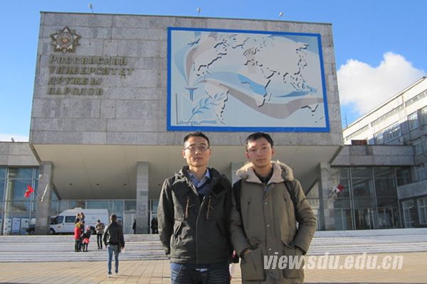 [本站讯]近日,山东大学生命科学学院生态学专业2012级上海合作组织大学项目硕士研究生汪文韬、丁彬同学按计划顺利抵达俄罗斯首都莫斯科,在俄罗斯人民友谊大学注册入学,开始了在该校生态系为期五个月的学习和生活。