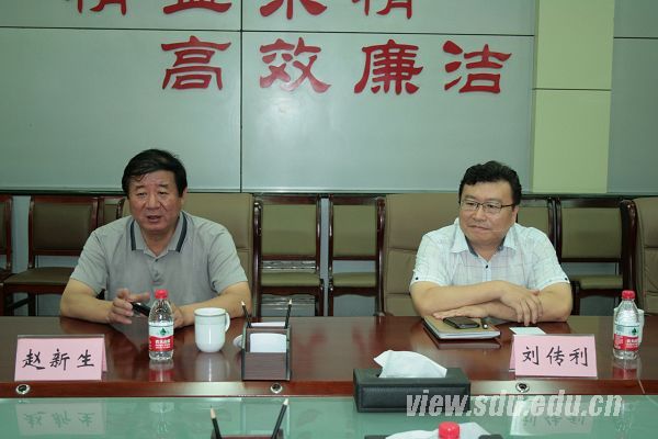 双方在总结回顾前两年合作的基础上,就政产研合作的战略布局、内容、方式等进行了深入探讨,明确了以新材料产业园为依托,以材料学院科技孵化与产业化为重点,通过共建技术孵化中心、重点实验室等实现材料学院科学研究和人才培养平台北跨;通过合作研究、产品开发等方式进一步将合作做实、做细,提高材料学院对产业园发展的支撑能力、服务能力。材料学院与新材料产业园合作战略方向的调整,标志着双方的合作又上新台阶,从技术合作提升为平台合作和双向服务层面。会谈结束后,按照“山大-天桥新材料产学研联合基金管理办法”的有关规定,赵新生将2013年度天桥区捐赠科研基金支票交给赵国群,两位共同祝愿“山大-天桥”合作取得更大、更丰硕的成果。会谈前,产业园科技局局长张海梁陪同参观了济南新材料交易中心、济南新材料科技园、国家胶体材料工程技术研究中心和鑫茂齐鲁科技城等重点建设项目。产业园副主任刘传利、材料学院有关人员等参加活动。
