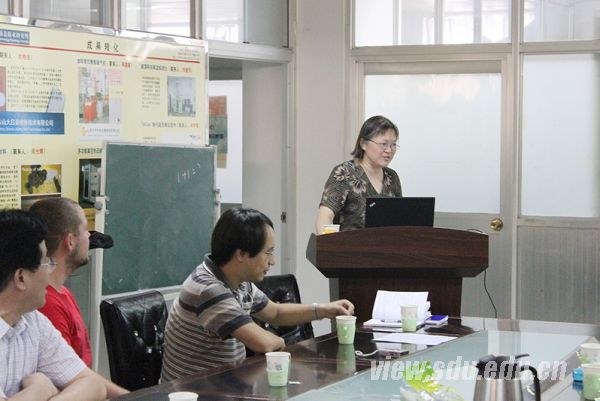 自组装膜(self-assembled monolayers)自从上世纪八十年代被首次报道以来,引起了科研人员的广泛兴趣。张敬东是较早使用单晶金电化学和扫描隧道显微镜(STM)对自组装膜开展研究的。此次来访山东大学得到了国际事务处“科研流动岗”项目和国家科技部973项目的大力支持。本次来访,张敬东分别作了两场题为 “Self-assembled monolayers and application in bioelectrochemistry”和“Investigation of Gold/Liquid Interfaces at the Nanometer Scale”的学术报告。她介绍了相关研究工作的思路,展示了STM的研究成果,并例举了自组装膜在关于单分子生物电化学的研究方面的应用。除了单晶金电化学外,张敬东还在金纳米颗粒绿色合成及STM表征方面做了一些探索性工作。