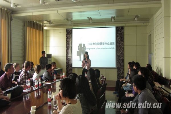 本次交流活动分为教师交流和学生交流两个环节。在教师交流环节,李勇用流利的英语详细介绍了山东大学的校区分布以及各校区的特点,一张张优美的校园环境的图片令美国辛辛那提大学的学生赞叹不已。宁荍同样用英语详细地介绍了土建学院建筑学系的相关情况。张汝华教授向在座老师和学生展示了济南公共交通规划,谷健辉教授就地域建筑文化向同学们进行了简短的介绍。此外,来自辛辛那提大学设计、建筑、艺术及规划学院的负责人Christopher Auffrey向大家展示了他们学校的地理位置、教学模式以及性能驱动设计在可持续建筑中的应用。Christopher Auffrey的语言幽默风趣,讲解充满激情。在学生交流环节,来自山东大学土建学院建筑班的邵戈凡同学向美国学生展示了他们平时的绘画和制作的模型。孙振亚同学通过精美有趣的电子杂志向美国学生展示了学习中的趣味事情。展示后,两校的学生自由组合,就校园生活用英语进行了广泛深入的交流,现场气氛异常活跃,许多同学纷纷与外国朋友合影留念。通过交流,同学们都对对方学校的大学生活有了一定的了解。山大学生流利的英语获得了辛辛那提大学学生的赞赏,展现了山大学子良好的风貌。