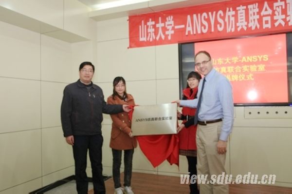 此次合作ANSYS公司赠送给山大最新版的价值上百万元的ANSYS14.5软件。山东大学-ANSYS仿真联合实验室的建立,对学校工科的本科、研究生教学以及科研工作将会起到积极的推进作用。仪式上,Street作了ANSYS在亚洲和中国以及大学计划的报告。安世亚太北京分公司总经理王斌在报告中介绍了与ANSYS共同在中国的拓展。仪式由材料学院副院长田学雷主持,山东省铸造协会秘书长张志勇、国际事务部有关工作人员以及材料学院、机械学院等研究生参加了揭牌仪式。