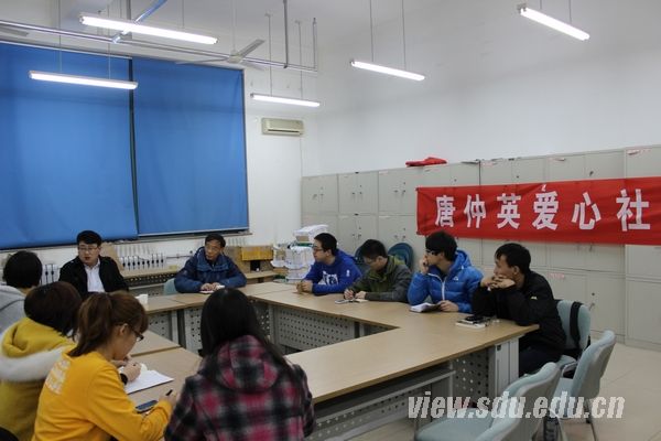 [本站讯]3月20日,山东大学唐仲英爱心社师生座谈会在中心校区举行。座谈会主要讨论了爱心社本学期后续活动的规划。唐仲英基金会高校指导教师宣红出席座谈会并发言,唐仲英爱心社指导老师陈付波和社团学生骨干参加了会议。