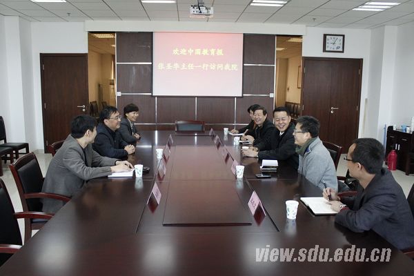[本站讯]3月20日,《中国教育报》编委、记者发行部主任、山大校友张圣华一行访问文学院。学校党委宣传部部长李平生、文学院院长郑春、党委书记王德胜与来宾进行交流,双方就拓展合作、资源共享以及学生实习等议题进行了广泛探讨,并就若干合作议题达成共识。