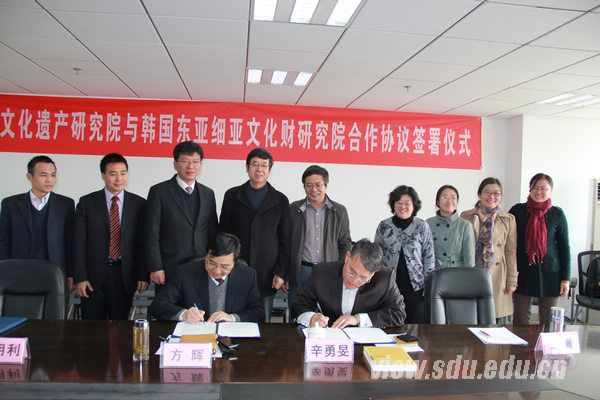 方辉介绍了山东大学考古学科的历史沿革、学科建设所取得的成绩和国际交流情况。他表示,山大考古学科一直重视国际化发展,取得的成绩也离不开国际合作的助推作用。此次协议的签署是考古学科第一次和韩国考古科研机构开展合作,这对考古学科的国际化战略布局具有重要意义,希望在师生中能引起对山东半岛和朝鲜半岛考古合作研究的重视。辛勇旻介绍了东亚细亚文化财研究院的概况和主要研究方向。他表示很高兴能和山东大学文化遗产研究院合作,儒家文化对韩国影响很大,东亚细亚文化财研究院对儒家文化一向很关注,山东是儒家文化的中心,考古遗迹众多,济南又是山东省的政治文化中心,因此与山东大学开展考古合作研究是势在必行。
