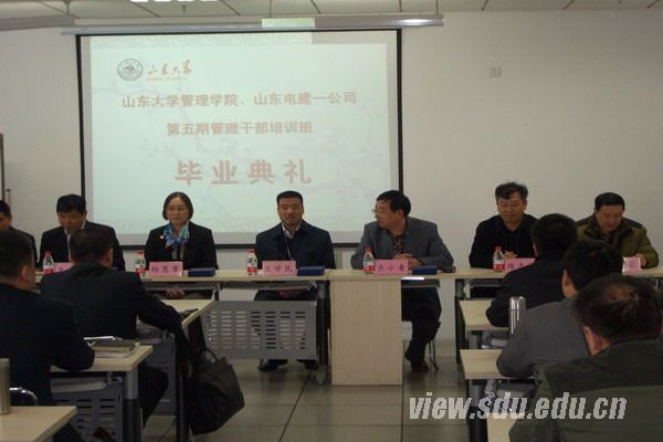 [本站讯]4月8日,由管理学院和山东电建一公司联合举办的管理干部培训班结业典礼在中心校区知新楼举行。山东电建一公司总经理王守民,管理学院院长杨蕙馨、党委书记吉小青及全体培训师生出席了活动。