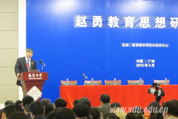 山大一附中校长赵勇以“做有信仰的教育——关怀生命成长”为主题发表演讲,系统阐述了自己的教育思想体系和实践。他认为“关怀教育”的核心内涵是“关怀生命的成长”,“关怀教育”强调教育者要有关怀情怀和关怀能力,并且能以信仰之心坚持做“关怀教育”,终极目的是培养具有关怀素养和关怀能力的被教育者。他从三个方面详细阐述了自己对教育信仰的实践:关怀学生,致力于完整人的教育;关怀教师,促进教师的精神成长;关怀家长,让家校携手。赵勇的教育思想受到与会专家和代表的一致好评,并引起强烈反响。教育部中学校长培训中心副主任沈玉顺表示,关怀是道德的基石,具有丰富的内涵。把“关怀”作为一种教育信仰在当今时代具有重要意义,要结合我们所处的时代背景和国情深入探讨和实践,不断丰富关怀教育的内涵,并最终走向关注国家命运、民族兴衰的教育关怀。