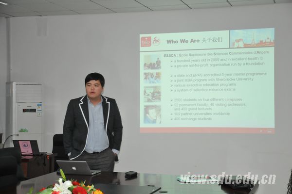 随后,沈伟介绍了法国昂热高等商学院和山东大学经济学院“3+2本硕联读合作项目”,从地理位置、学术研究、学生培养等方面全面介绍了昂热高等商学院,又介绍了欧洲的主要科研项目,希望大家能够积极申请。