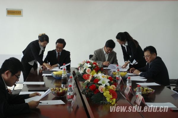 赵永新代表环境学院与庞鹏远签订了《产学研合作协议》,高宝玉与庞鹏远共同为“山东大学环境科学与工程学院研究生实习基地”揭牌。庞来源向环境学院副院长王曙光交接了创新基金支票。