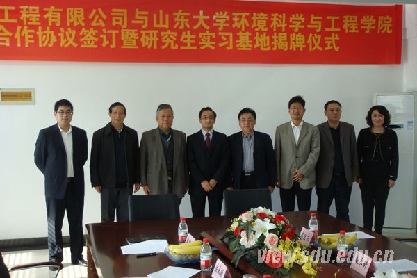 [本站讯]10月31日,环境科学与工程学院与山东思源水业工程有限公司举行签约仪式,签订产学研合作协议,建立学生实习基地。环境学院院长高宝玉、院党委书记赵永新,山东思源水业工程有限公司董事长庞鹏远、副总经理庞来源等出席仪式。