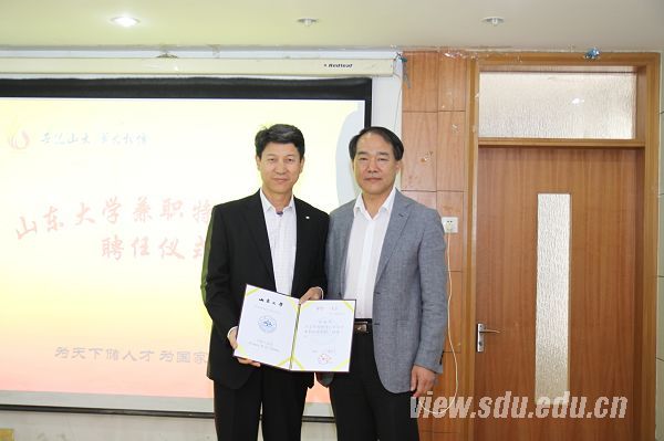 信息学院党委副书记张东升主持聘任仪式,他介绍了牛志升教授和陶然教授的工作经历、研究领域以及获得的主要成就。随后,袁东风为牛志升教授和陶然教授颁发了山东大学兼职特聘教授聘书,对他们加盟山东大学表示欢迎和祝贺。他简单介绍了山大的历史近况,以及建设世界一流大学的发展目标,表达了希望在山大人才培养等方面与两位教授进一步加强合作的意愿。牛志升教授和陶然教授在受聘感言中表示,希望和山大一起努力,共同建设美好明天。学校人事部副部长于向明等相关负责人参加了仪式。