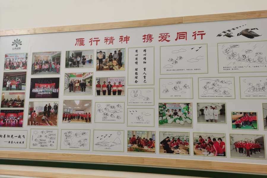 看到了“精制文化编码”。第一幼儿园的赵仲梅园长给幼儿园的整体装修色调起了两个好听的名字——“暖阳黄”和“萌芽绿”,童趣和富有美感的环境让孩子们沉浸式地发现美、感受美。每一所高质量的幼儿园文化和良好的家庭文化传递给孩子的都是“精制文化编码”。山大幼教致力于把最好的教育奉献给每一个孩子,不断地营造良好的氛围,让幼儿潜移默化的在安全优质、儒雅高洁的教育环境中和谐健康的成长。