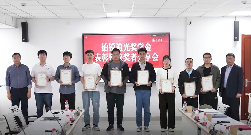 铂锐追光奖学金表彰暨获奖者分享会(右四为胡秀飞博士)