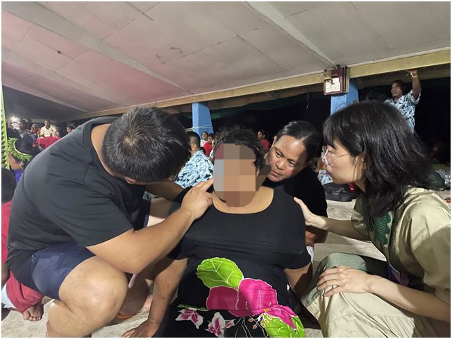 今年1月1日,我们受邀参加当地新年晚会。晚上11时许,一名当地姑娘Mari在和同伴们跳舞时突发晕厥,神志不清。Mari晕倒以后,家属们都围在一起抱着她不知所措。我们马上冲上去,告诉他们我们是来自中国的医生,是中国医疗队,请相信我们。经检查后,我们初步认为是由于气温过高加上持续高强度跳舞,导致Mari中暑大量出汗而诱发休克及心脏骤停。