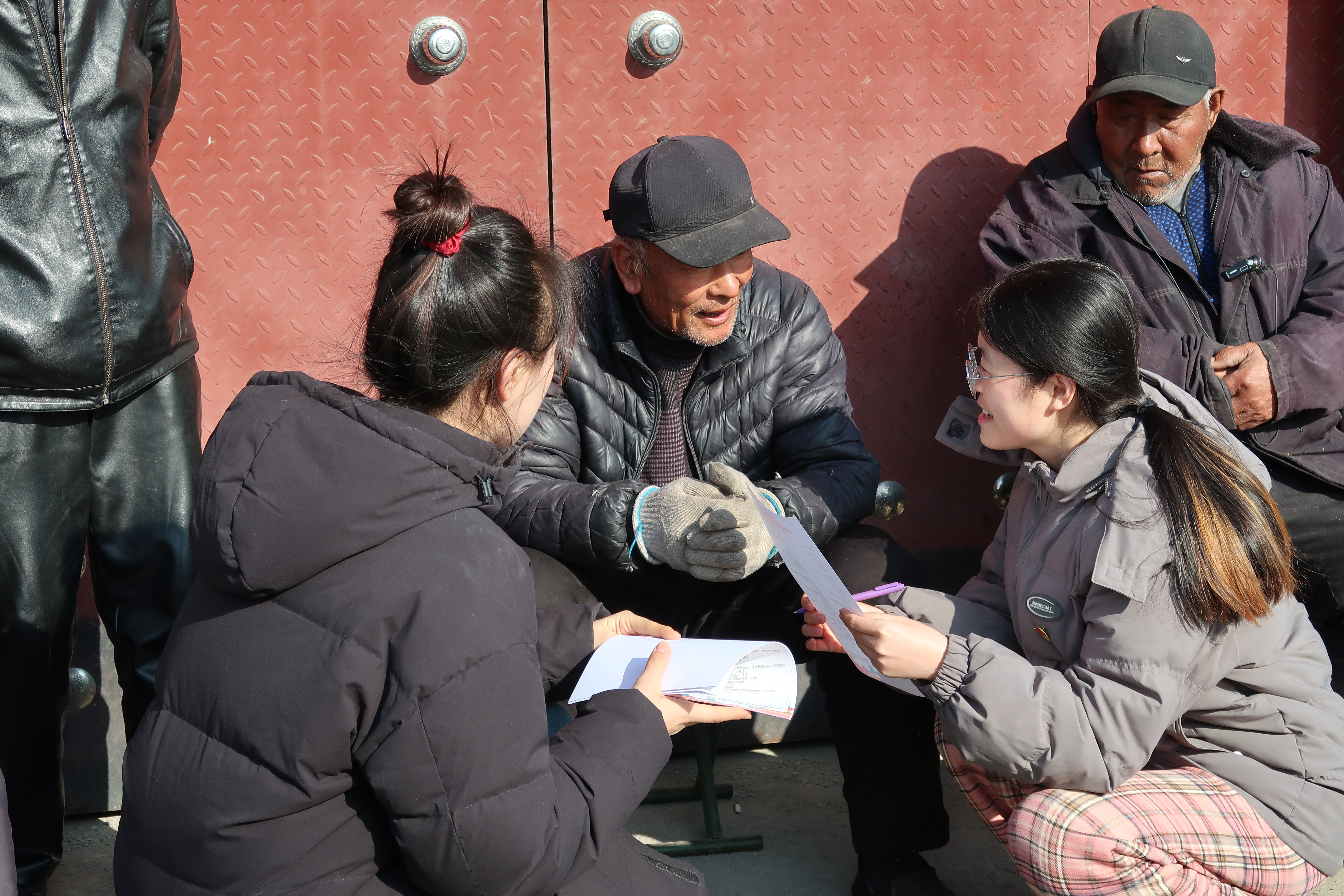 返回村口途中,我们遇到了许多聚集在胡同口聊天的爷爷奶奶。他们围坐在一起,晒着冬日的阳光谈天说地,足以看出生活的闲适与富足。作为实践调研队成员,我们也没有错过这次与他们交流的机会,一起加入其中,用接地气的语言询问了问卷中的问题,得到了他们的热情回复,也进一步了解了目前桂庄村的乡风文明建设情况。