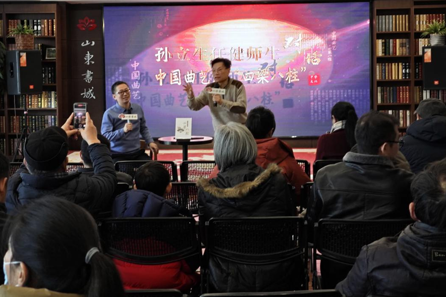 在刚过去的周末,由著名曲艺家孙立生先生与其学生任健合著、山东大学出版社出版的《中国曲艺的“四梁八柱”》新书签售会,在山东书城举行。签售会现场,作者与观众进行了交流互动,从签字留念到拍照合影,观众反响热烈。光明日报、中国高校教材图书网、中国新闻出版广电网、大众日报、山东商报、齐鲁壹点、曲艺杂志、闪电新闻等多家媒体对本书的出版发行进行了报道。