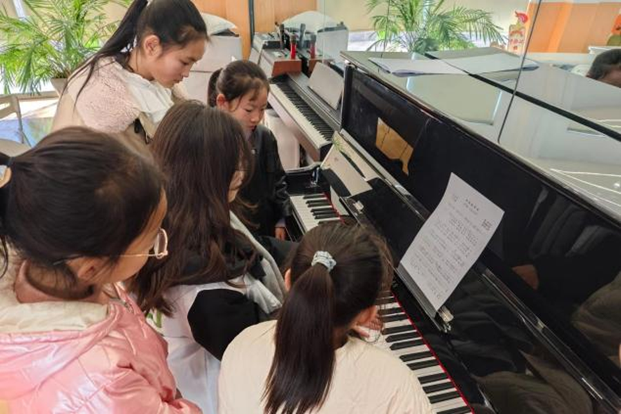 手工结束了,陈曼妮带孩子们一起到音乐教室学习合唱节目。歌曲《童年》中“一天又一天,一年又一年,盼望长大的童年”唱的是孩童心中对未来的期许,也是我们对过去的怀念。不过在山大,我还听到一句“无论沧桑岁月长”,歌颂的是我们不断向前的激情。我从暑假第一次来到这里,再到寒假延续故事。虽然不知道往后的日子里会不会再见,但我明白当下就是最好的时光。