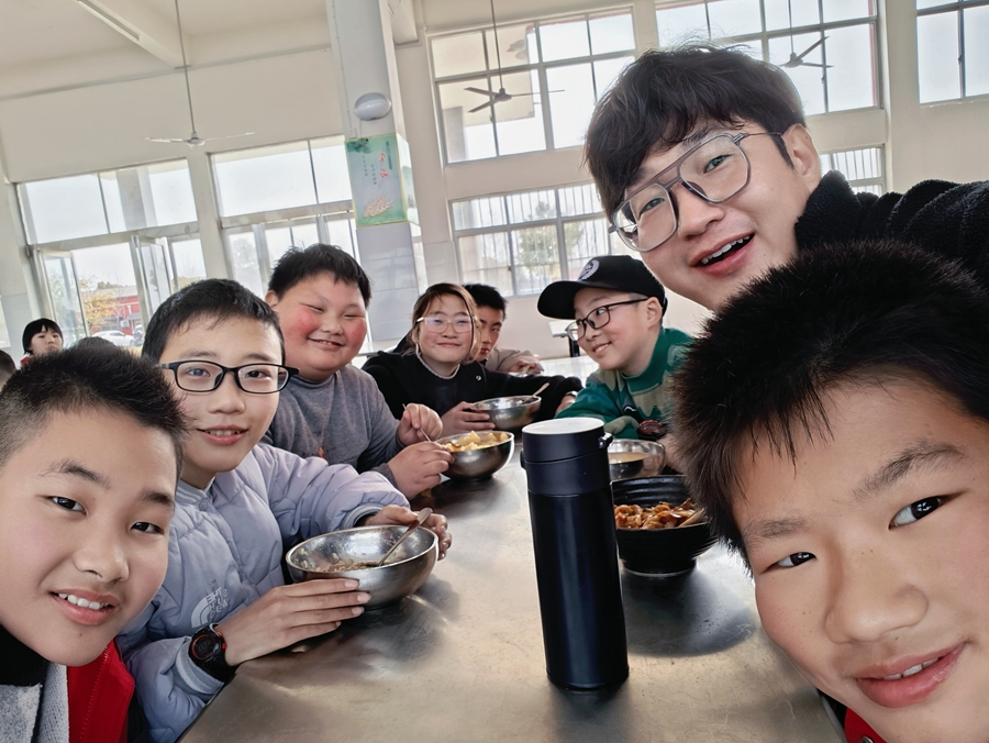 随着每日的接触,我与这些简单纯真、朝气蓬勃的孩子们仿佛都在彼此心中播下了一颗种子,慢慢地生根发芽,成为了彼此心中的牵挂。我逐渐习惯于提前进教室跟他们聊聊日常,陪他们做课间操,中午与他们一起学习。也不知从何时起,讲台附近的座位成了孩子们眼中的“香饽饽”,孩子们也会因为忘记一项小作业扑到我的怀里大哭不止,会在过年时给我发语音“老师,新年快乐”,会在学生餐厅围着我一起吃饭,会将我的每一句话熟记在心。