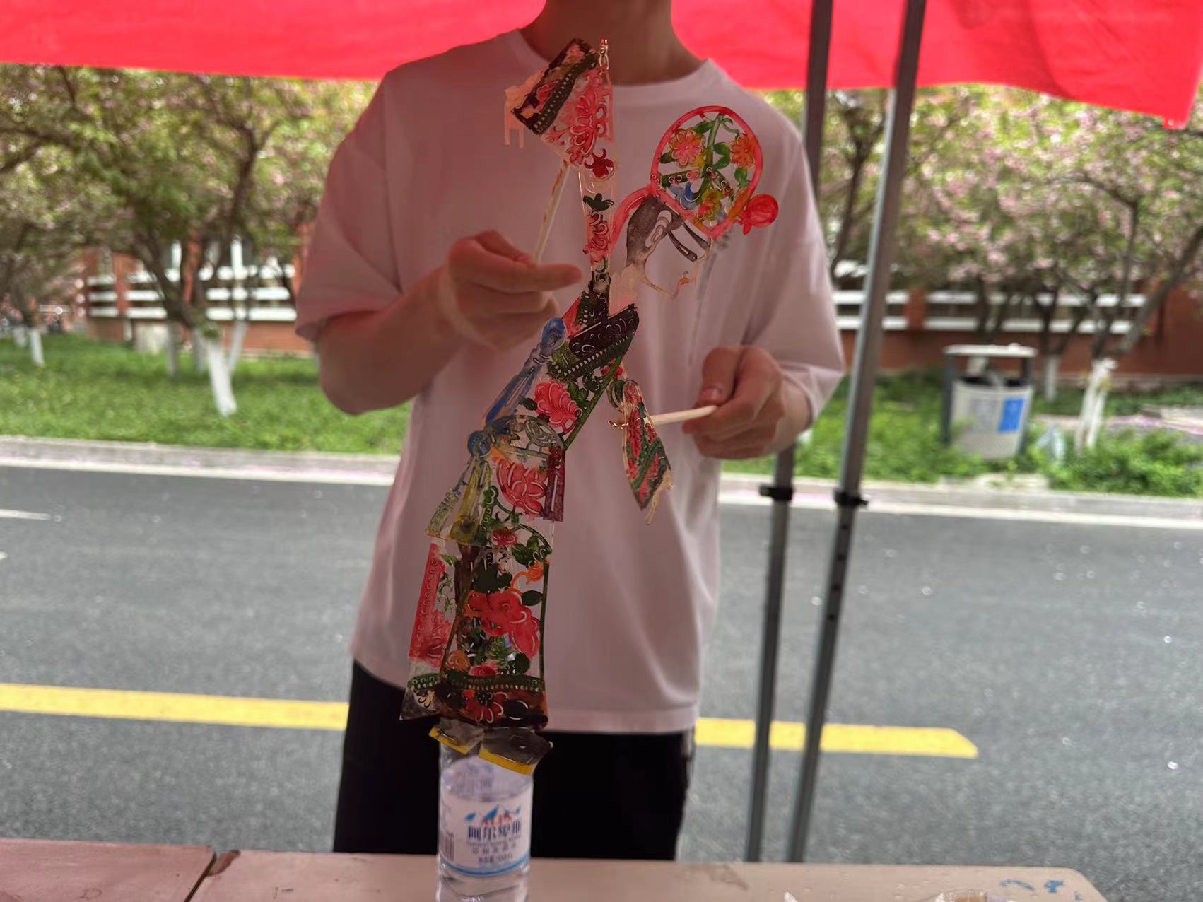 随着活动的进行,有的同学满心欢喜赢得了皮影道具,带回去与同学、朋友一起感受皮影文化的魅力。而有的同学则留在了展台上,由我向他们讲述着涂彩的方式和动作的要点。我将油墨涂在皮影上,仿佛是给这副躯壳赋予了灵魂,让它变得栩栩如生;我手指翻动,皮影也跟着舞蹈跳跃,诉说着皮影人物不平凡的故事。