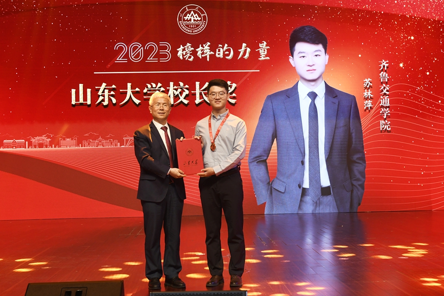 身后是过往的荣光,荣誉背后更多的是责任和使命。“榜样的力量”优秀学生颁奖典礼,既是山大学生优秀榜样的集中展示,也是属于山大人的思政大课。李校长在讲话中提到我们应该争做有担当的时代先锋,“青年兴则国家兴”。作为中国式现代化的参与者、见证者,我们更应该发扬不怕苦不怕累、脚踏实地的精神,传承山大人朴实、扎实、务实的品格,做有理想、敢担当、能吃苦、肯奋斗的新时代好青年,不负时代,不负韶华,继续追求卓越、勇攀高峰。我也将始终秉持“为天下储人才、为国家图富强”的办学宗旨,用自己的知识和能力去服务社会、回馈母校,为国家的繁荣和进步贡献青春和热忱。