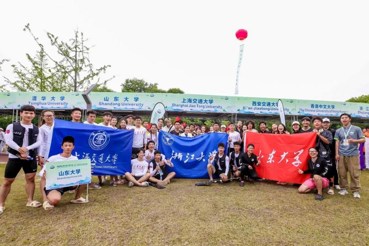 这次活动中,以龙舟为契机,我结识了清华大学、香港中文大学、新加坡南洋理工大学、复旦大学、南京大学等高校的师哥师姐,他们不仅是我学习上的榜样,更是我成长路上的推动者,激发了我学习外语的兴趣与动力。在我看来,这不仅是一场水上运动赛事,也是一次国际交流的机会,更是山东大学走向世界的体现。比赛全部结束后,我们与国内外高校代表队合影留念,晚上一起参与了颁奖典礼和草地音乐节。在音乐和人潮中,大家的节奏出奇地一致。幕天席地,绿水青山相伴;翩迁灵动,青春歌声飞扬!