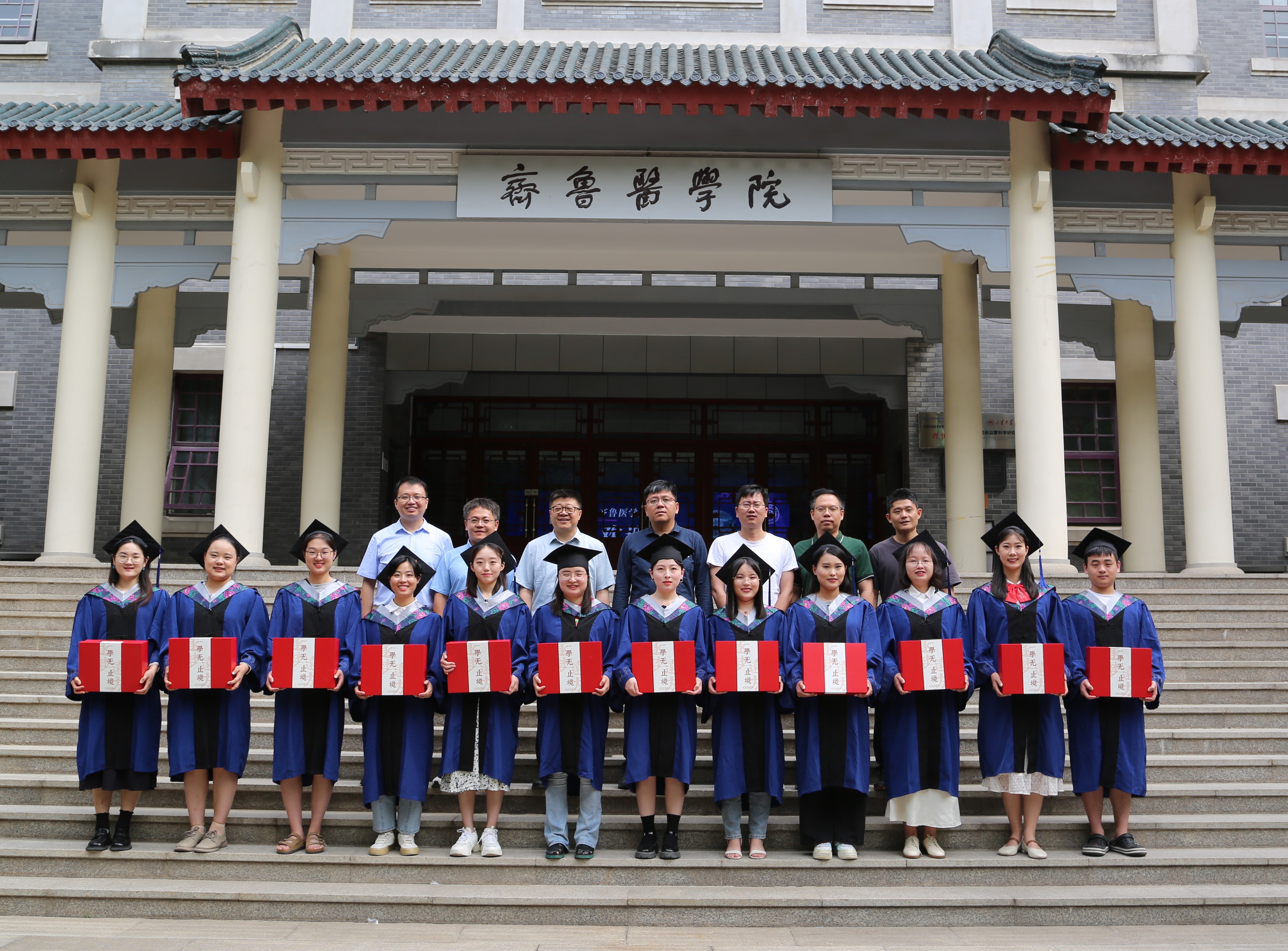 “感谢你们的坚持和努力,感谢我们携手一起走过并走出疫情的艰难时期,一起走向更加坚定充满希望的今天和未来……”孙金鹏院长的致辞把我拉回到现实。我面前是绿意盎然的趵突泉校区,背后是雄伟壮观的齐鲁医学院大楼,身旁是相处三年的同学、老师,我们享受着毕业的快乐,也经历着分别的不舍。我们和山大的故事即将在2024年的夏天结束,纵有万般不舍,但是山水相逢、终有一别。以后,也许我会无比怀念每天被闹钟吵醒的清晨,怀念组会前被台灯照亮的夜晚,怀念实验室独有的药品气味,怀念食堂每日熟悉的菜色,怀念羽毛球馆里挥洒过的汗水,还有十号楼下的小馋猫们和曾经为理想而拼搏的我们……