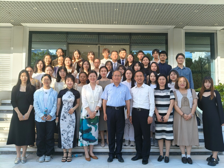 肖军正大使(前排中)与山东大学赴希腊访学师生合影留念