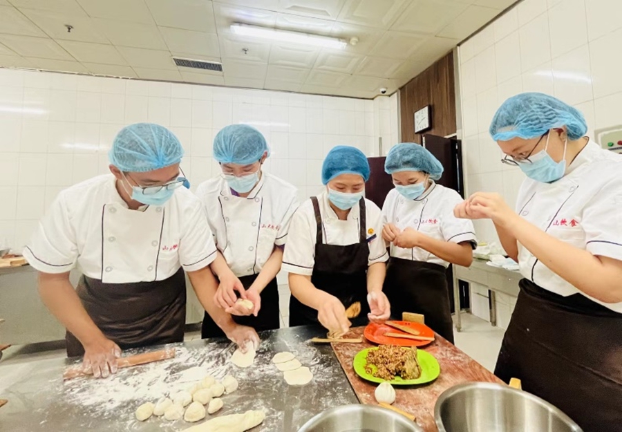 在两天的“美食美课”线下实践课程中,我们走进山大食堂,体验大厨的工作。山东大学饮食管理服务中心与谢老师为我们带来了别开生面的课堂。