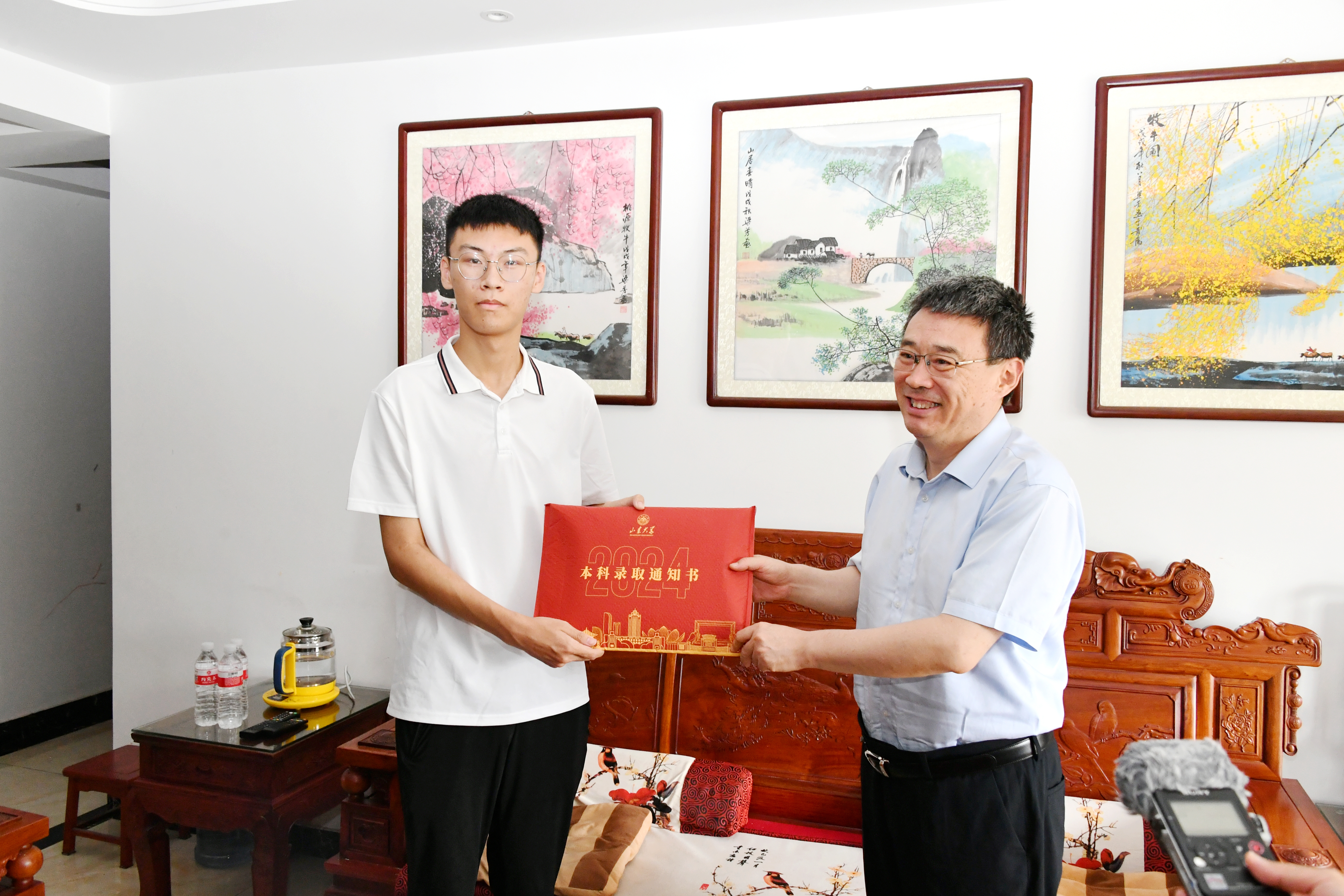今天是一个美好的日子,山东大学的吴臻副校长和老师们将第一封2024级本科新生录取通知书送到我们家中。老师们的到来让我非常的感动和激动,感动于老师们冒雨亲自送来这样一份特殊的18岁生日礼物,激动于终于拿到了心心念念的大学录取通知书。