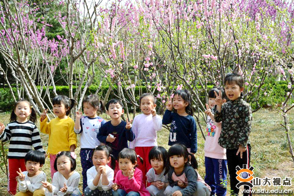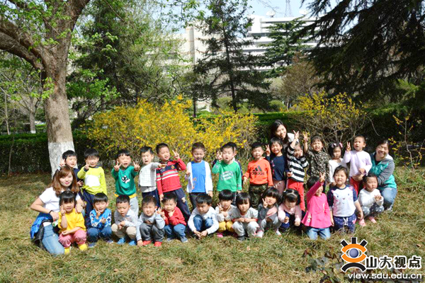 今天,我与近30名孩子一起带着特别兴奋的心情走进山东大学千佛山校区学校花园。出发前,我们对孩子们进行了外出的安全教育,提醒孩子们在春游的路途中要跟随老师一个跟着一个走,不掉队、不乱跑,做个讲秩序的好宝宝。花园赏花、踏青时爱护一草一木,做个小小的爱花使者、环保小卫士,不要远离老师与同伴,还要尝试着照料自己、照顾同伴。“老师,我知道啦……”一声声稚嫩地回答后,孩子们已迫不及待地想要投入大自然的怀抱。清点完人数,小朋友们手拉着手走出园门,家长志愿者也加入了我们的队伍,和我们共同开启一趟春之旅。