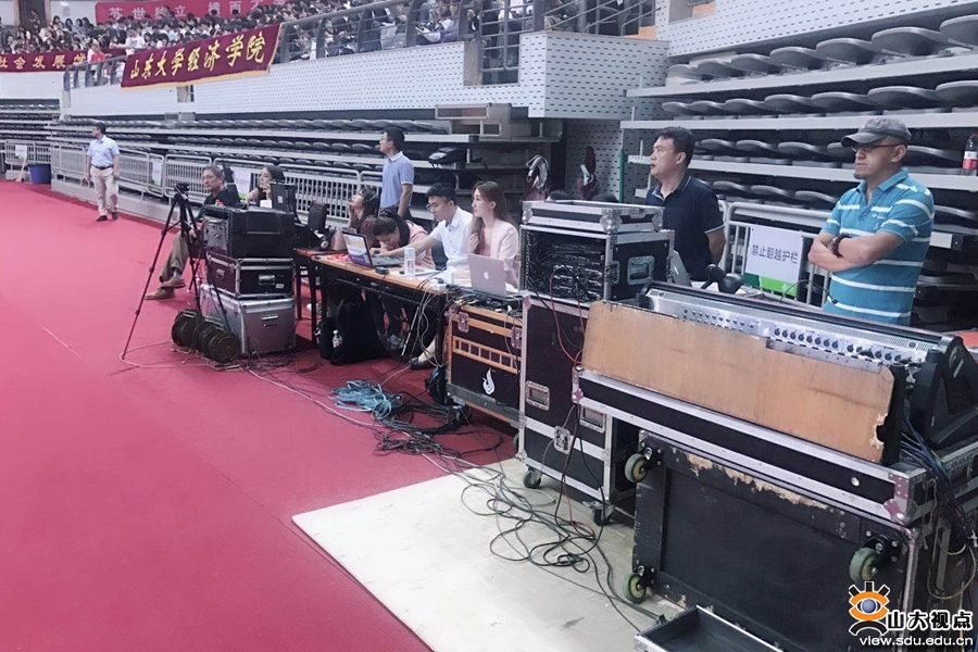 鉴于之前有些主持经验,撰写“榜样的力量”主持词和每位同学的风采简介这一任务交给了我。连夜完成后,校电视台给了很大的支持,迅速制作成七段视频。视频实现了我们预想的效果,但播放和切换变成了难题。据以往经验,播放视频和音乐的导播台与操作展示PPT的电脑分隔楼上楼下,我们预估到主席台和内场的衔接尤为关键。所以,我们又紧急制作了详尽又精确的流程表,这样才能保证主持及五个同学演讲时播视频——切换PPT并另配背景音乐——切换主屏幕及现场——再播放视频等眼花缭乱的操作万无一失。