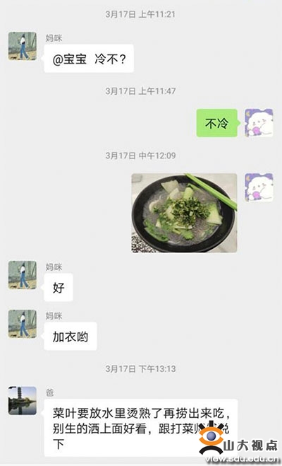 打开手机在齐园餐厅群问了问,任主任答复我说是食堂给我特殊准备的,还给我发过来另一位食堂工作人员的联系方式,告诉我有什么想吃的就发信息告诉她。当我在私信里反复向食堂的工作人员道谢时,齐园的任主任回复我一个笑脸,告诉我不用客气。