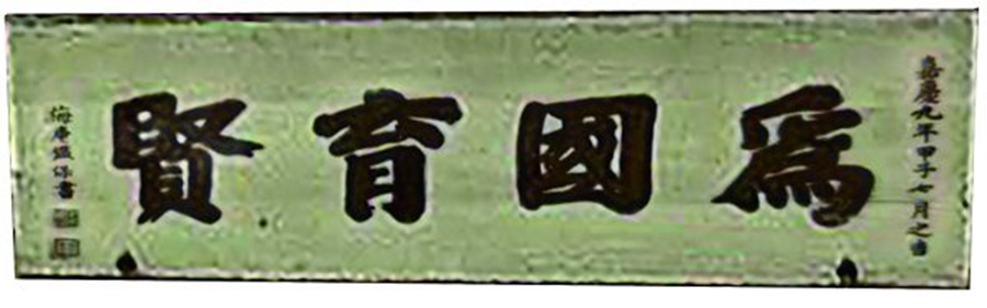 匾额常作为装饰悬挂于建筑门楣、窗楣、厅堂等显赫位置,用来表明建筑名称、性质、用途,或表达思想、情感、寄托,或用于歌颂、褒奖、教化等,堪称“建筑之眼”“建筑灵魂”。匾额与建筑相互辉映,书法与雕刻水乳交融,内涵与形制相得益彰,是中国独有的多种艺术形式融为一体的优秀传统文化之一。铁保为泺源书院题写的“为国育贤”,笔画饱满,结体稳重,静穆醇厚,观之肃然,既体现了齐鲁大地千百年来重视教育的深厚传统,又表达出为国家培养优秀人才的良好愿望。如今,历经220年的城市改造、迁挪,泺源书院原有建筑已荡然无存,“为国育贤”匾更不知所踪。虽渺茫难觅,但今天的山大人不会放弃再睹其芳容的期待吧!